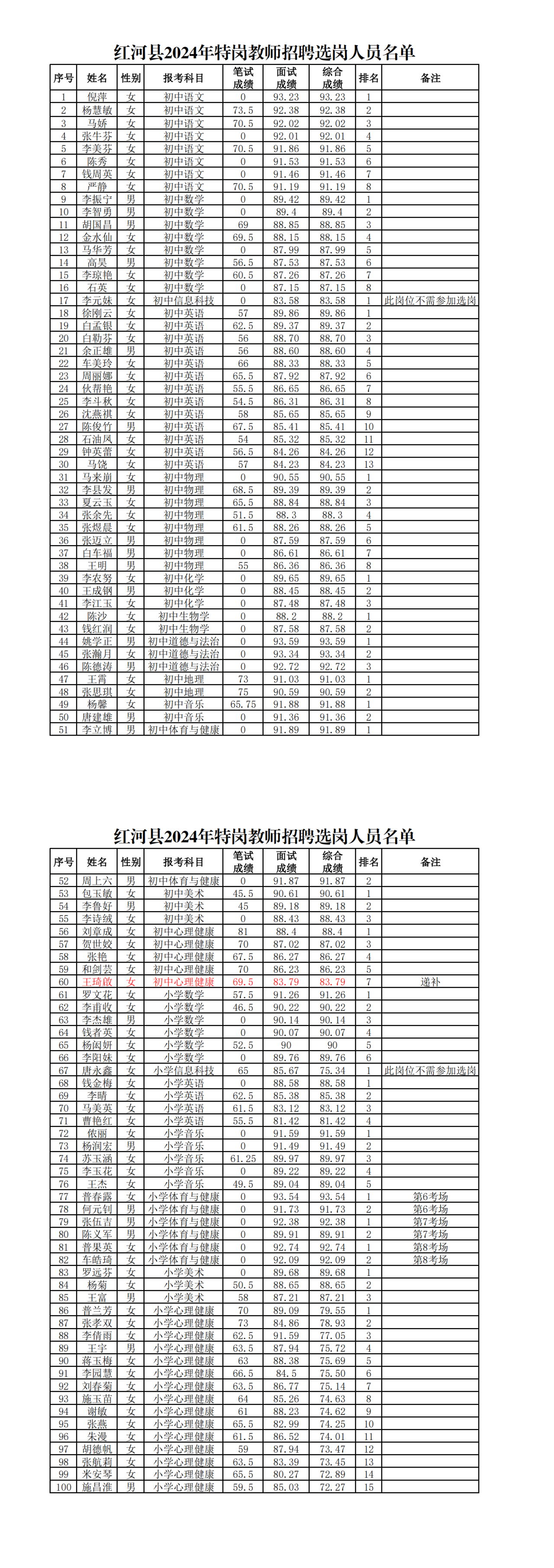 附件:1.红河县2024年特岗教师招聘选岗人员名单