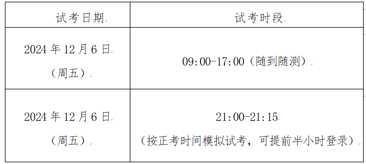 试考不做登录限制,考生可在指定时间段内登录考试系统,调试考试相关系统和设备,以熟悉正式考试要求和考试流程。